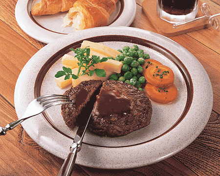 | Ox-tail soup | Steak with black pepper sauce | Prawn cutlets |